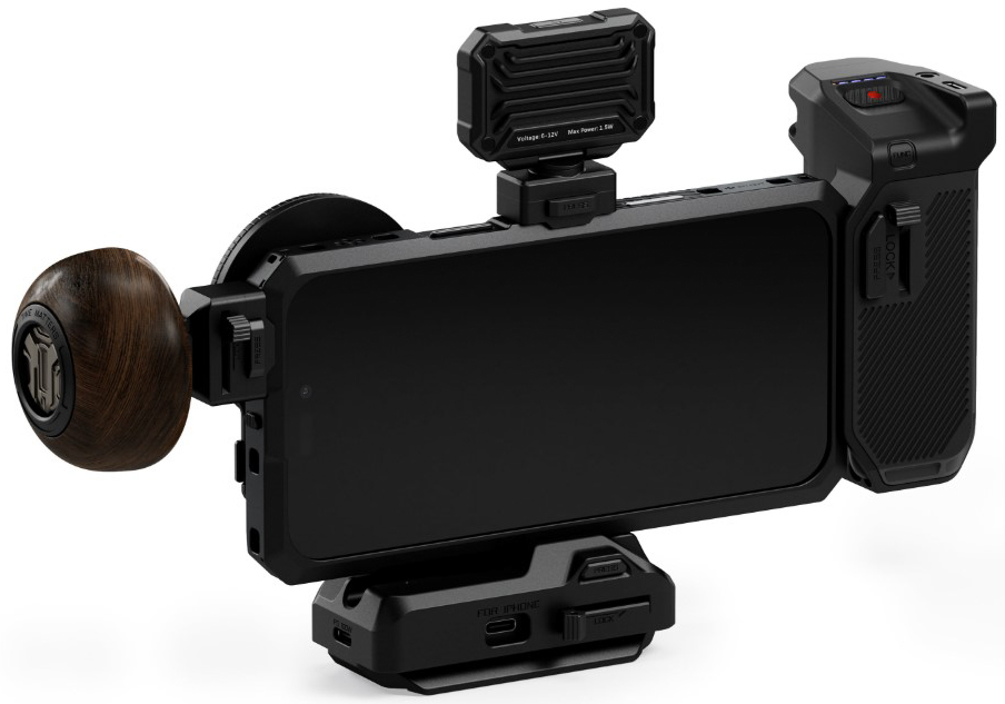 The Cooling System V2 includes a 22W variable-frequency dissipator that maintains iPhone performance during extended shoots. Powered by USB-C or the Focus Handle, it charges and cools the device via MagSafe wireless magnetic connection.
