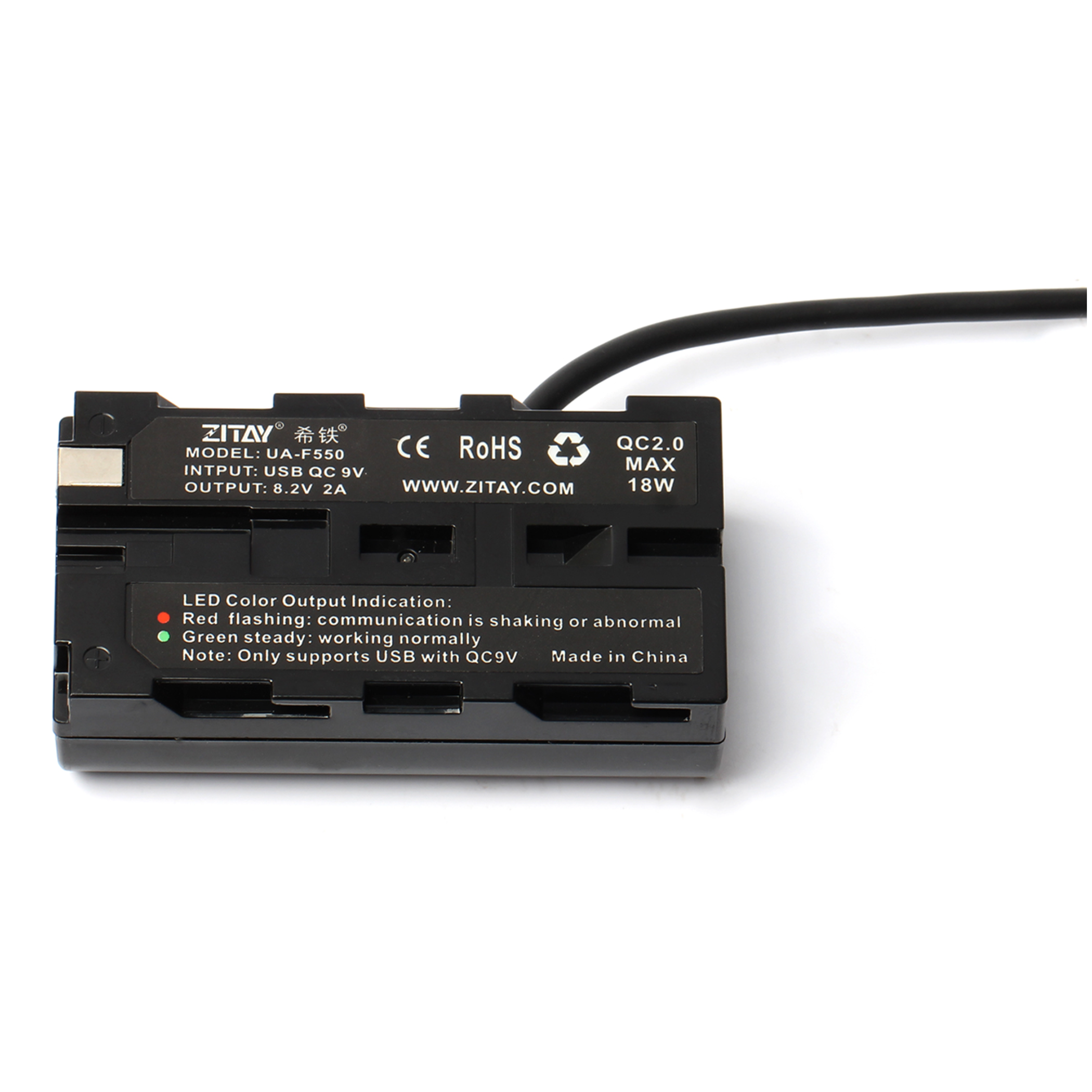 The ZITAY USB-C Dummy Battery for Sony NP-F550 provides a reliable power solution for filmmakers and photographers needing long-duration operation. It is designed to work with USB-C PD power banks or chargers and offers a convenient voltage display for monitoring output at a glance.